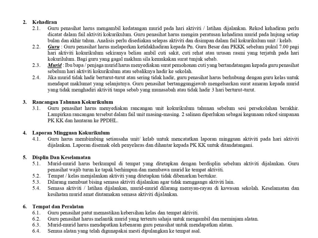Peraturan Kokurikulum