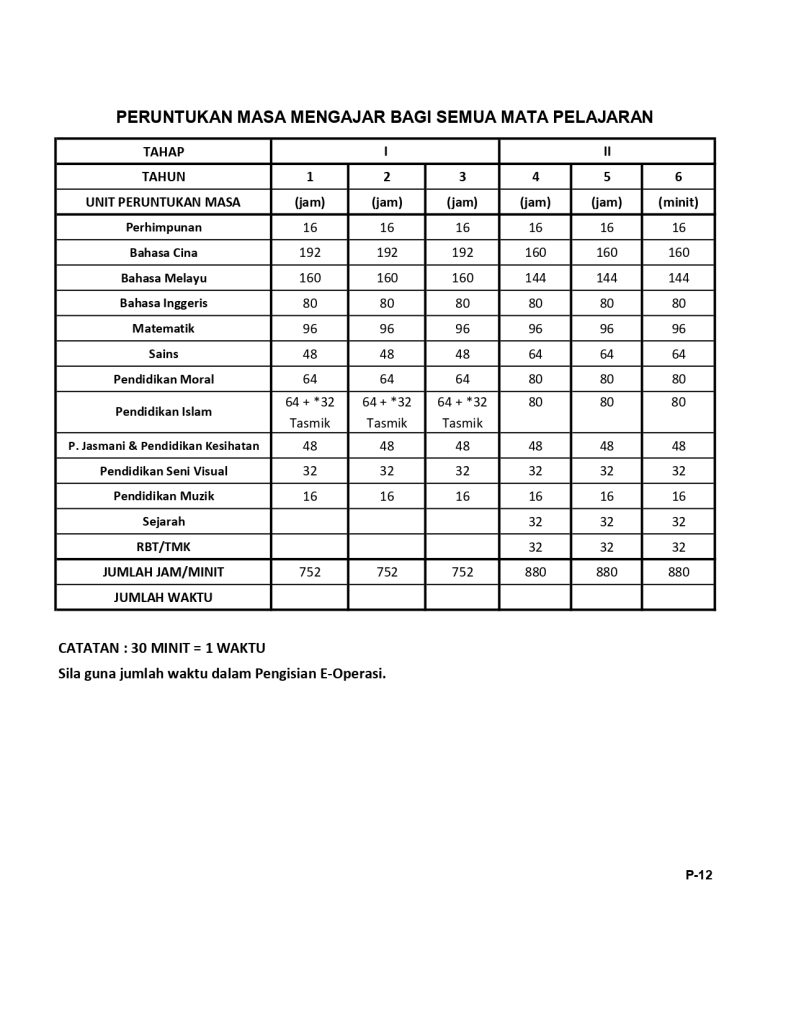 Peruntukan Masa Mengajar Bagi Semua Mata Pelajaran